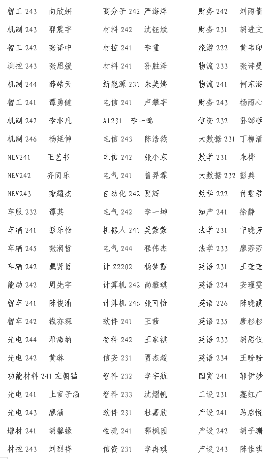 根据《关于开展湖北汽车工业学院2024-2025学年优秀朋辈心理骨干评选工作的通知》规定,经过学生个人申报、二级学院初审、大学生心理健康教育中心审核,拟评选牟炫伊等30人为优秀心协干部,石馨怡等41人为优秀心协工作者,向欣妍等75人为优秀心理委员(含宿舍心灵护航员)。具体名单如下: